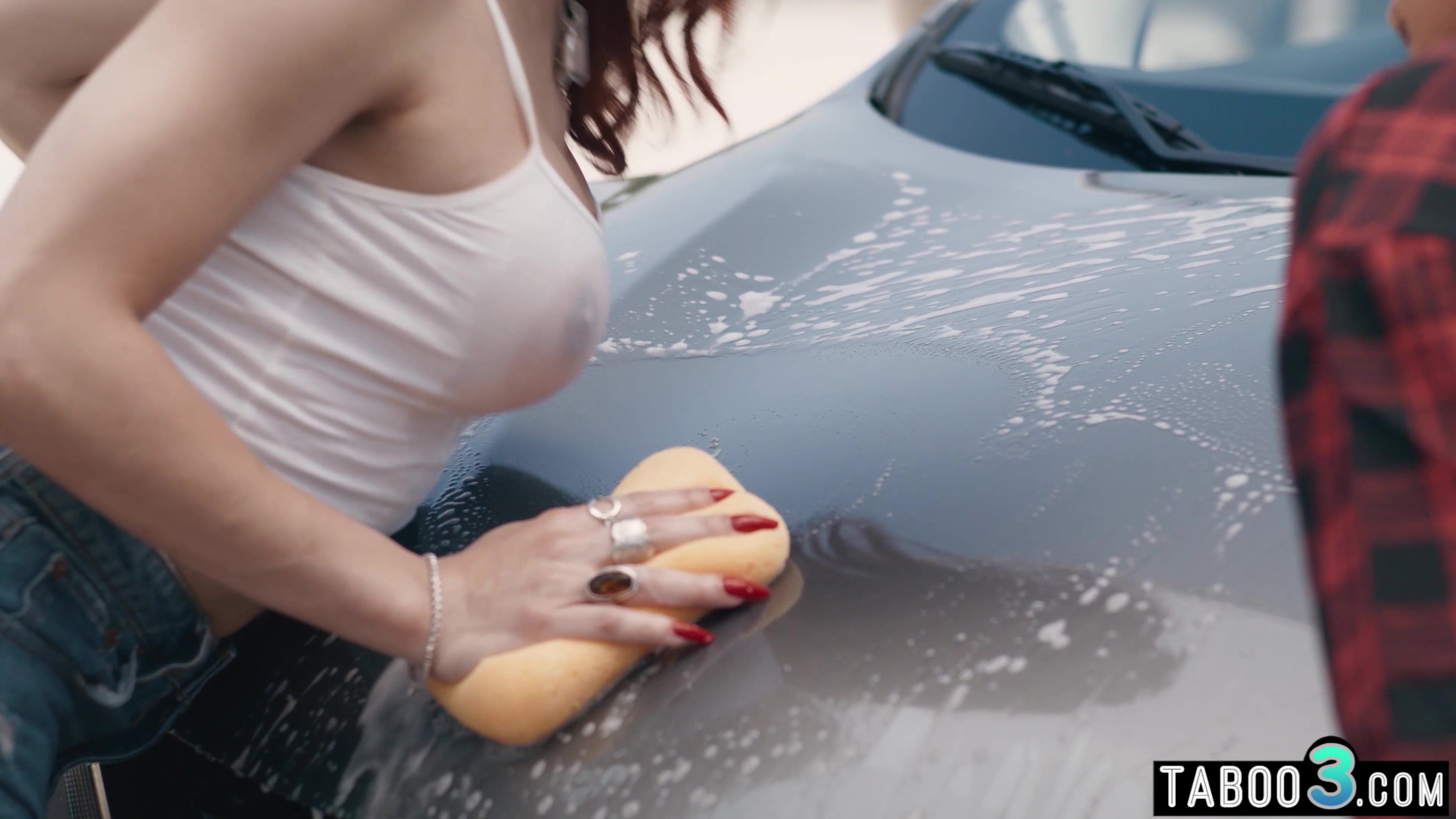 Bombastic MILF Romi Rain with massive boobs helps her transsexual GF Ariel Demure to wash her car then the naughty cougar offers to wax her big cock too She is sucking her throbbing dick then asks her to finger and fuck her pussy hard