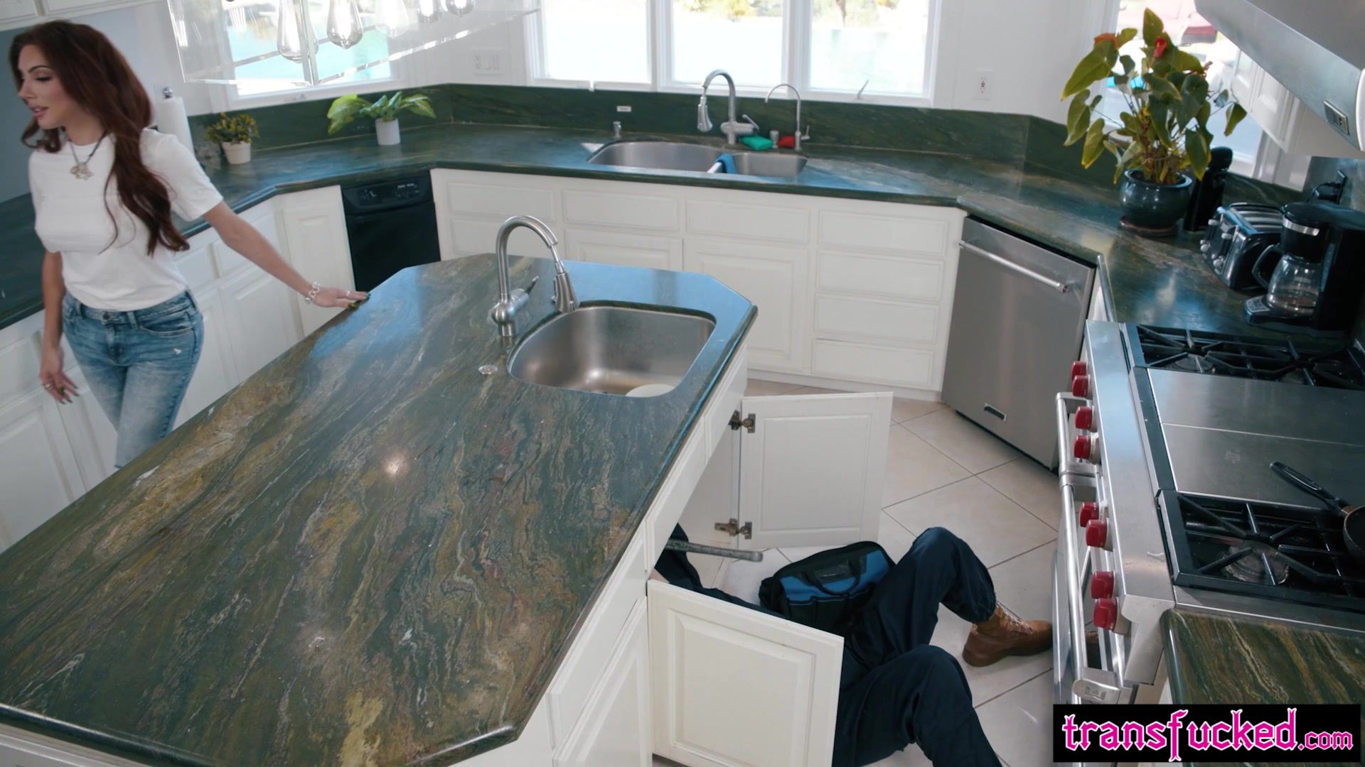 Horny big ass shemale Ariel Demure getting big hard cock plumbers attention and finally she enjoyed blowjob by him Big tits tranny seduced plumber Big dick guy put his pipe in her tight ass After perfect blowjob tranny enjoyed rough anal sex