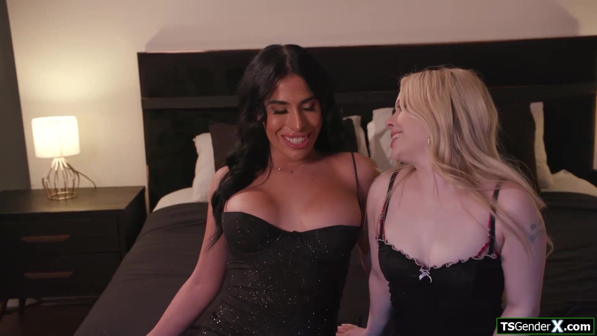 Haley Spades really wants to see her bf suck off her busty shemale friend Avery Lusts cock.The big tits tgirl teams up with her for a double blowjob.The guy deepthroats the trans babes dick and bareback anal fucks the tranny who licks her gfs pussy