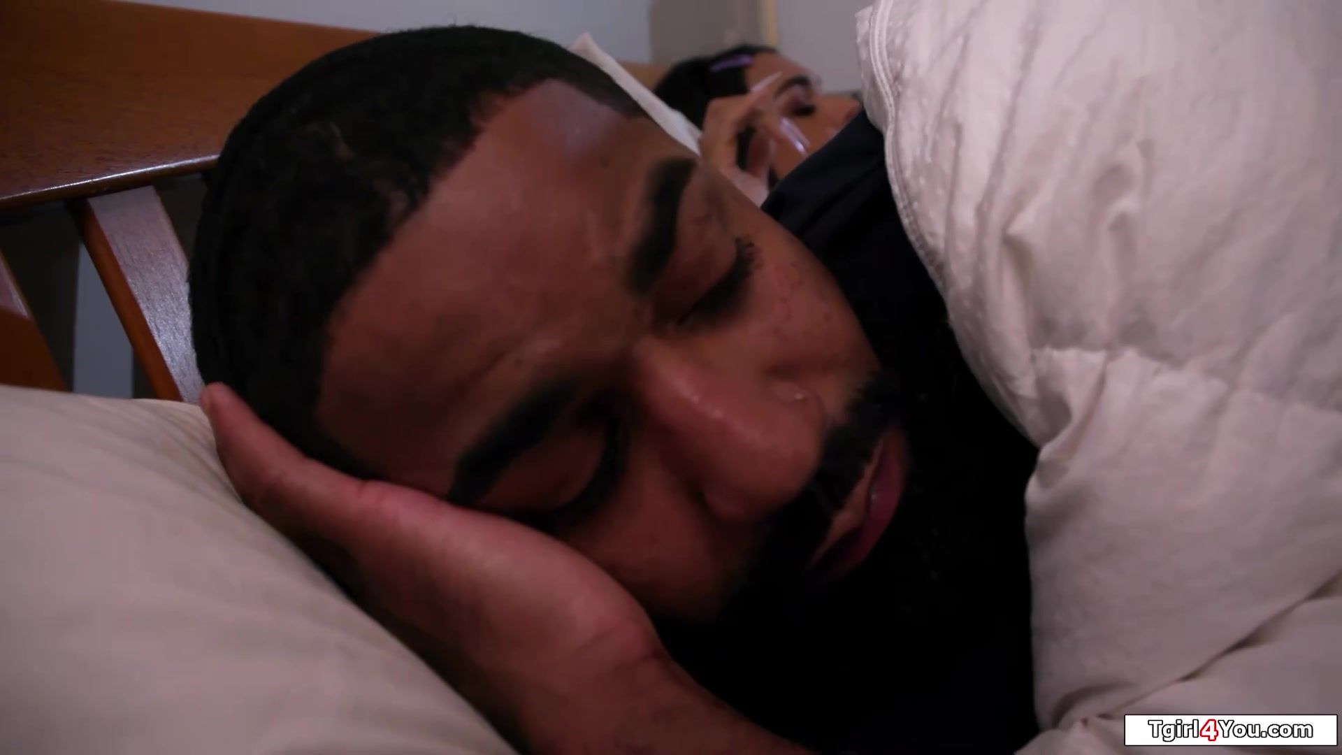 Busty trans sisterinlaw Eva Maxim doesnt mind being in the same bed.Hes shocked when the tgirl gets fully naked.The big tits latin tgirl is willing to suck off his big black cock and after she got her tranny dick deepthroated he anal barebacks her