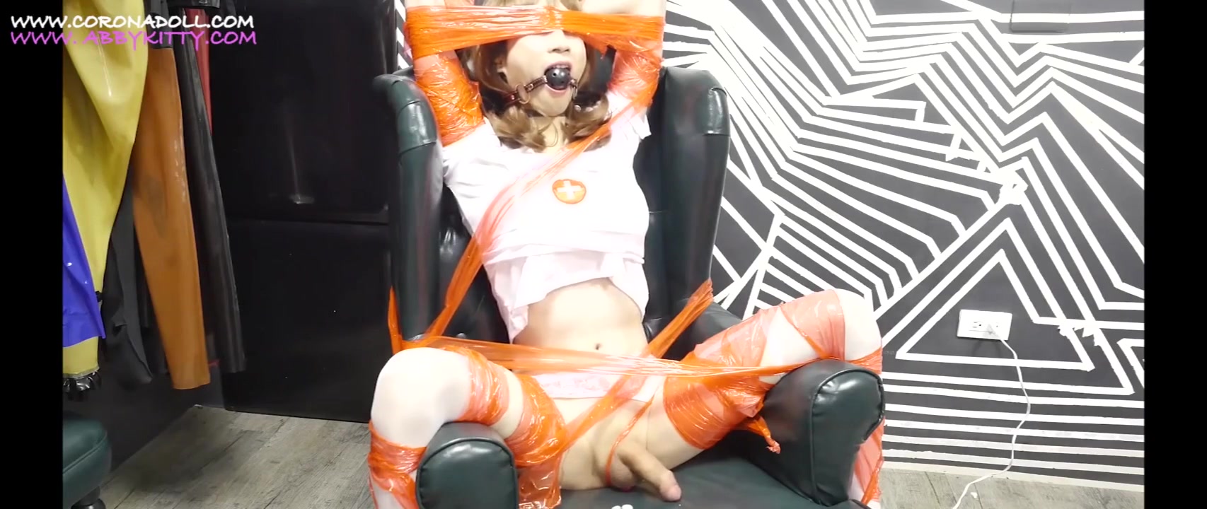 Oh God ,the nurse is plugged in the remote control toy Daddy tied her , put a mouth gag , cover her eyes~ And started to vibrating her cock by a massage stick. Finally... the helpless nurse was cum .