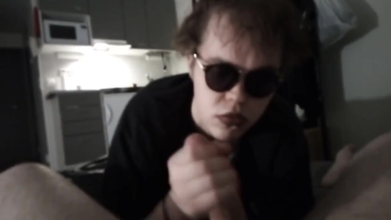 Smallish she-creature with sunglasses jacks off her ginormous pipe until jizz flow