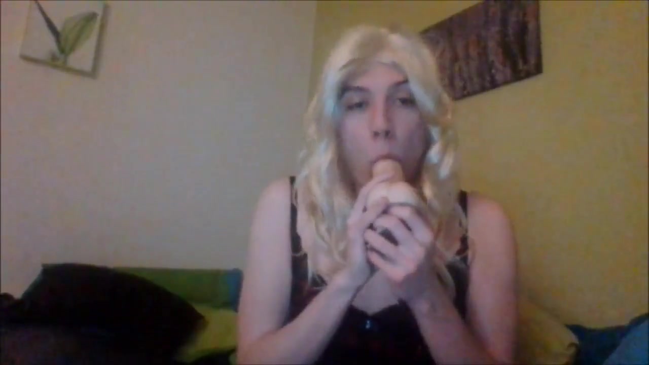 This horny sissy crossdresser is a total slut, she loves to fuck herself with her big dildo and then deepthroat it clean The little whore practices for big cock by real men