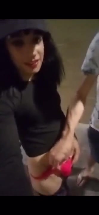 Teen crossdresser walking with guy in public parking, showing ass and teasing him. (Please watch next part and leave the comment)