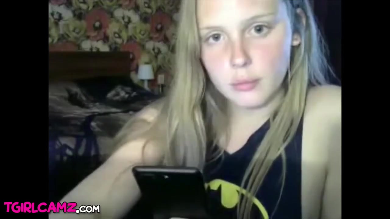 Blonde teen Russian shemale dick jerking. Watch her live on Tgirlcamz.com webcams.