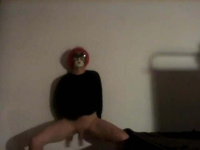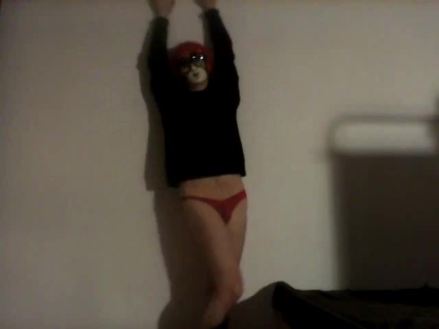 T-Model dance, crimson head, crimson undies, venice mask, wild caboose