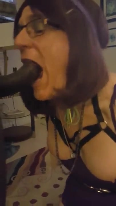 Sissy in Black adores, salivates and throatfucks BIG BLACK COCK