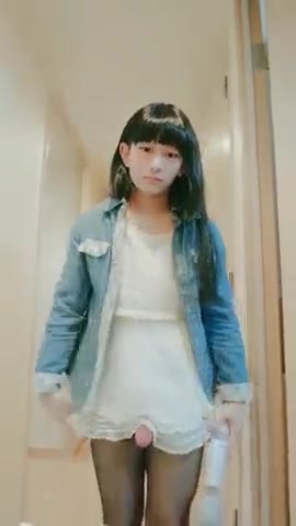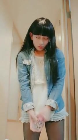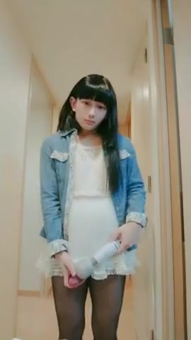 First-Timer Teenager Japanese She-Male Blows A Load In Glass