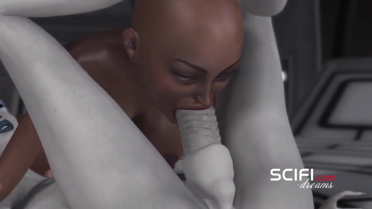 Scifi-fantasies.com. Ebony chick get banged rock-hard by three dimensional dickgir...