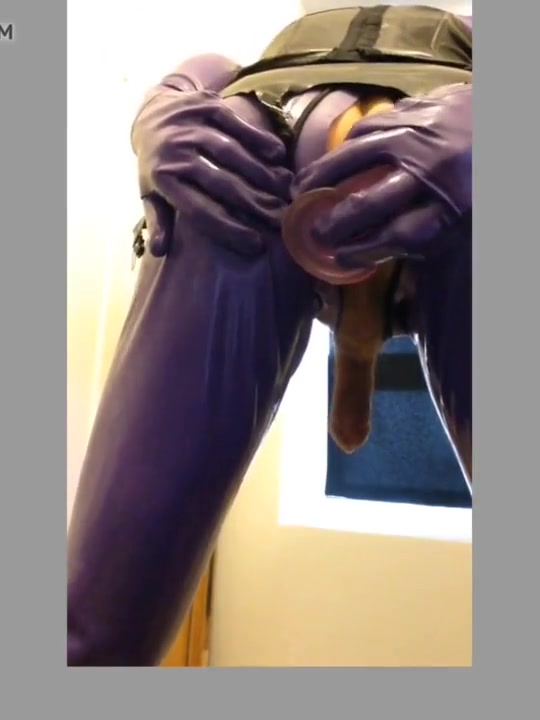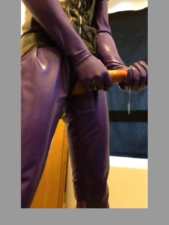 Solo ass-fuck sesh in spandex catsuit with jizz shot