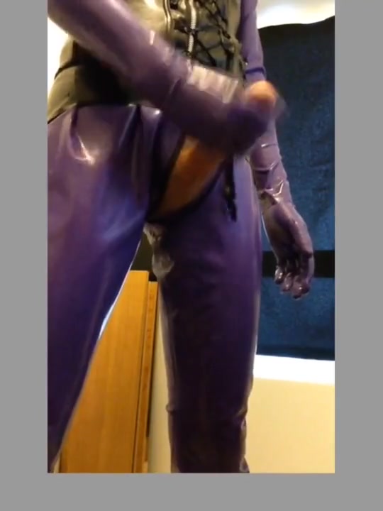 Fetish Crossdresser Spandex Pvc Catsuit Getting Off