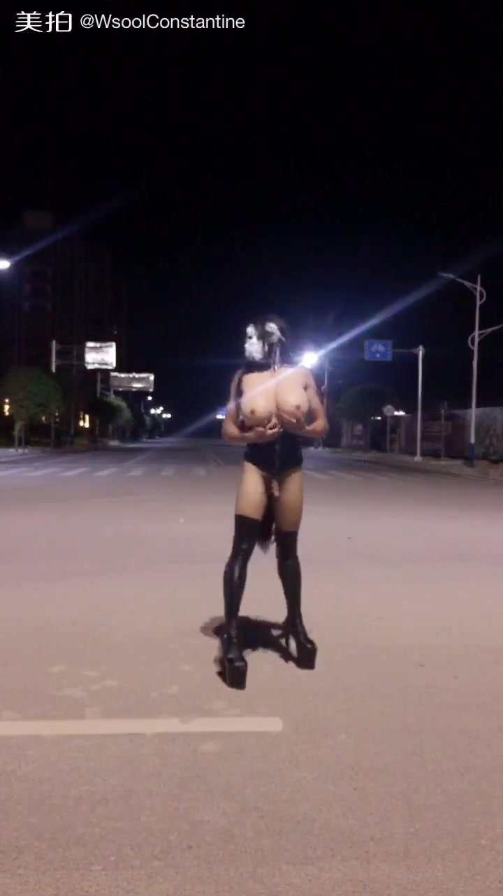Sissy Gay Cd street mega-slut showcasing in public expecting to get dicked outdoor...