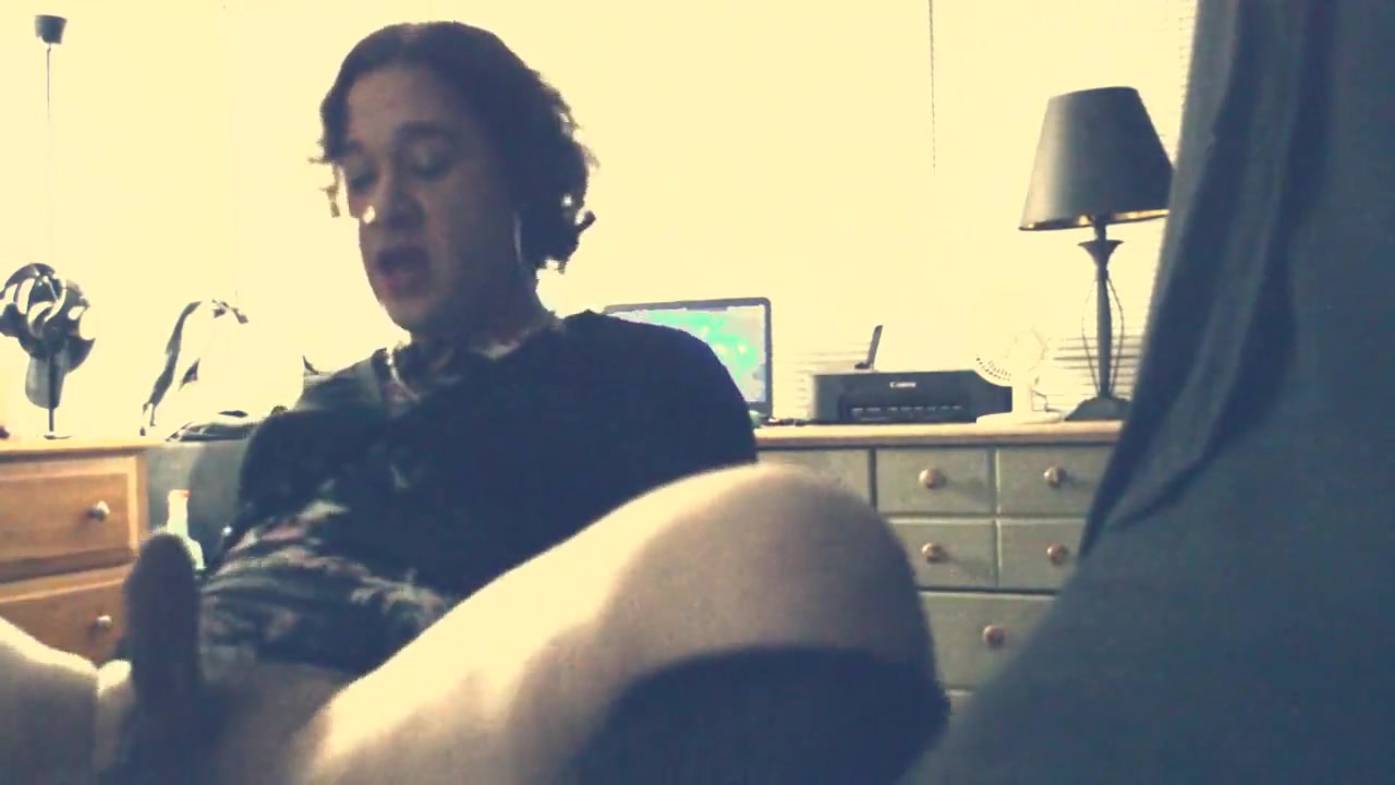 BIG BLACK COCK gives internal ejaculation sissy blows a load on his hard-on
