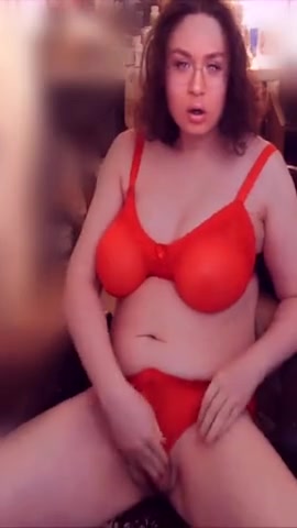 A video of me in see through red bra and panties where I masturbate. I used a snapchat filter for my face and have F cup silicone breast forms.