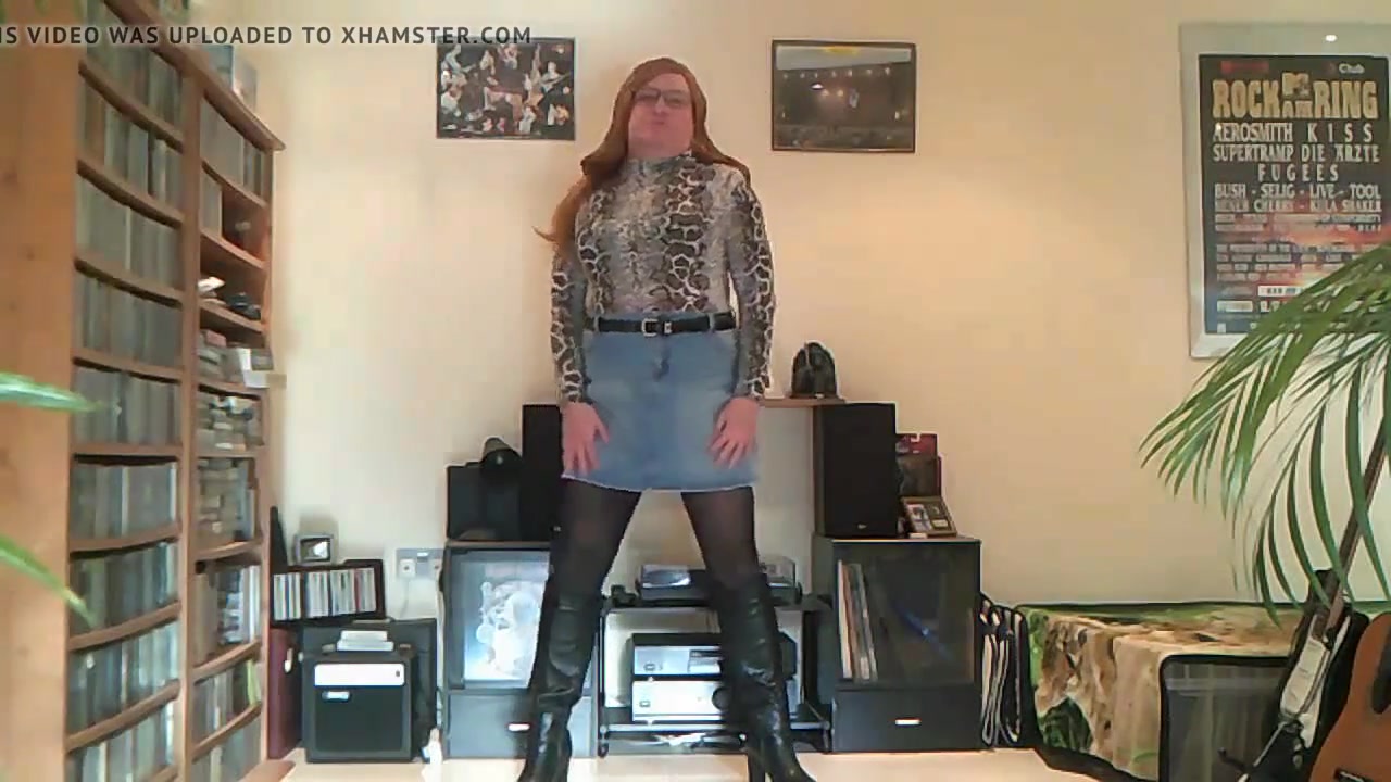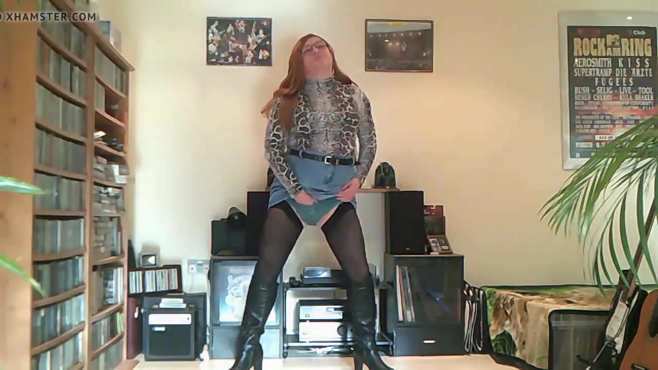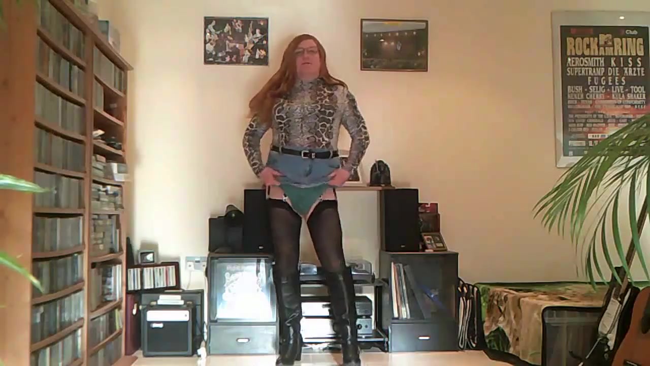 Sissy rayna wiggles her bum and shows her chastity cage.