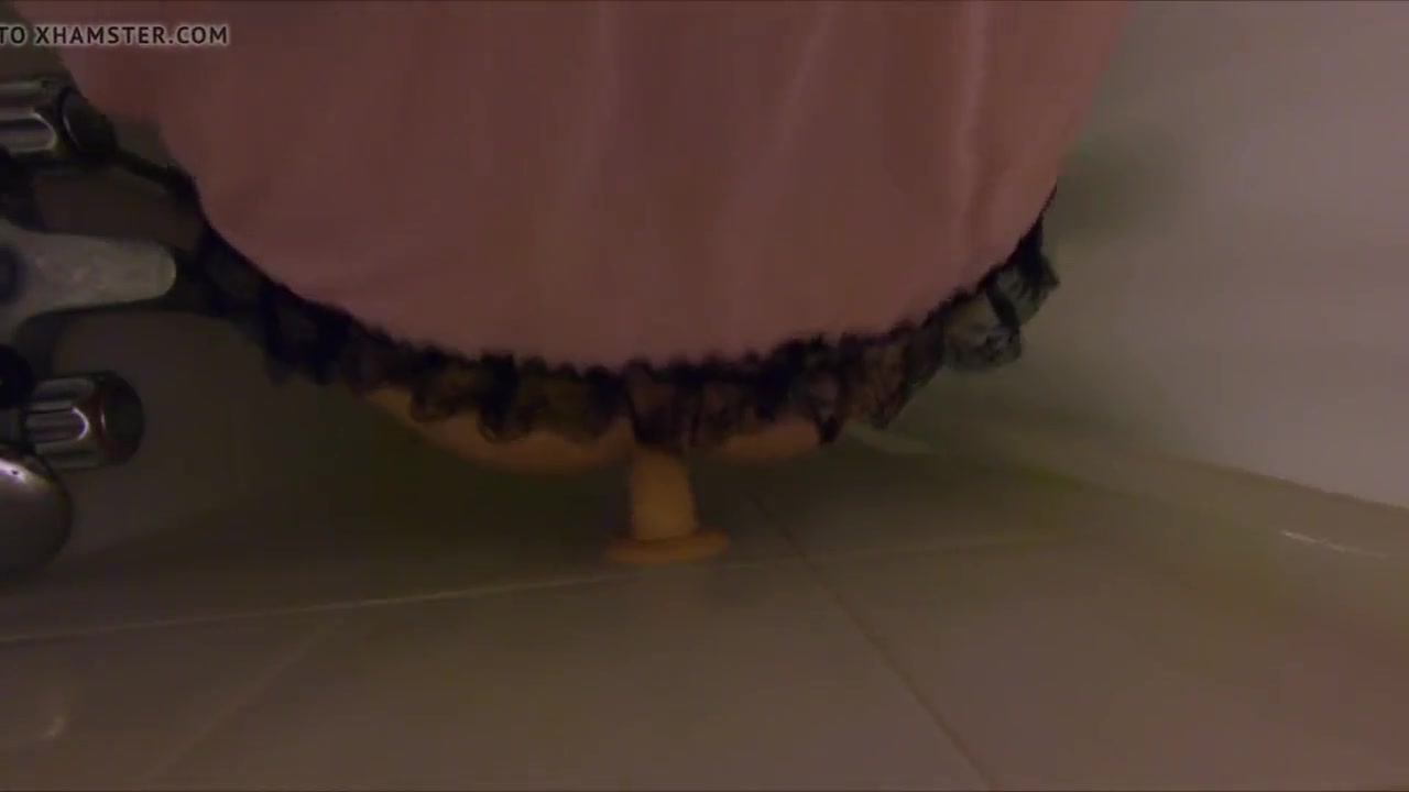 Diminutive wild humungous arse sissy In crimson underwear in the shower with giant...