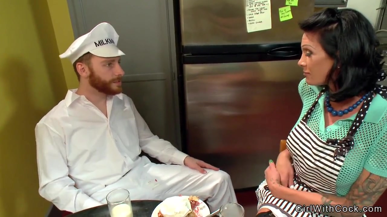 PLUS-SIZE Shemale Sailor Pinky Plumbs Yam-Sized Arse with Fake Penis
