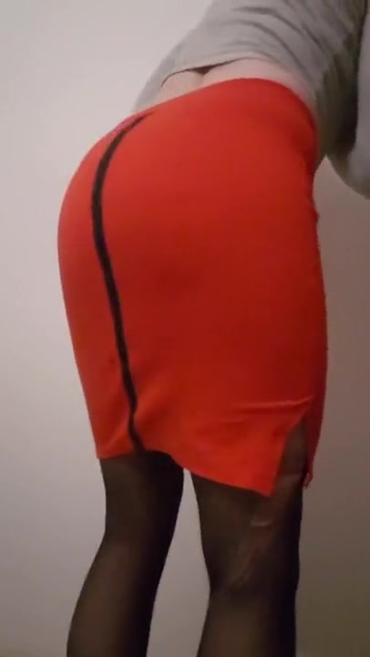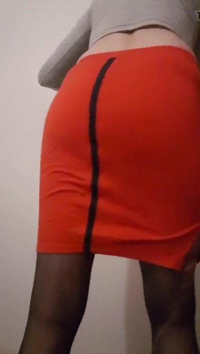 Crossdresser Lea flashing off her butt in crimson taut microskirt