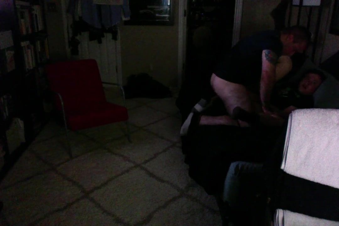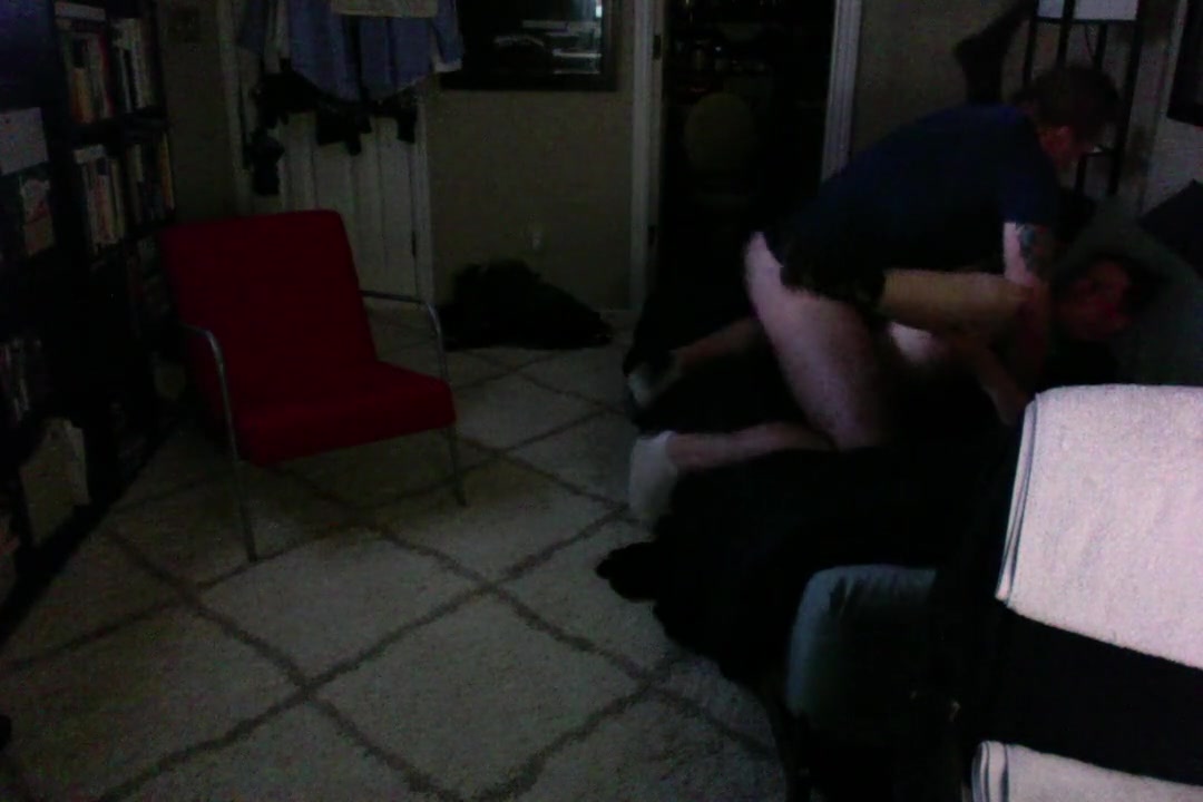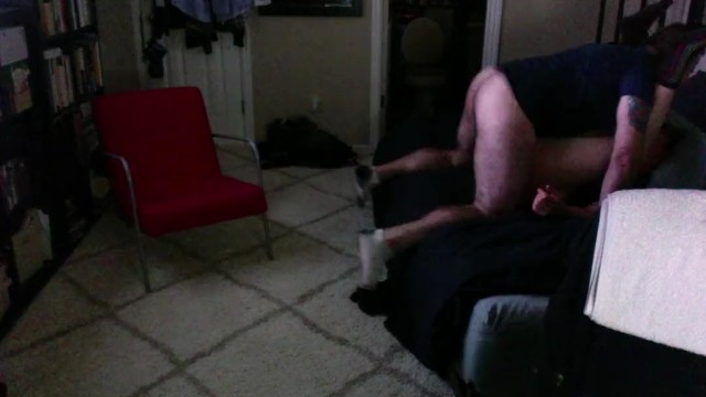 She-male cumdump gets her facehole pounded before arching over and taking ass fuck...