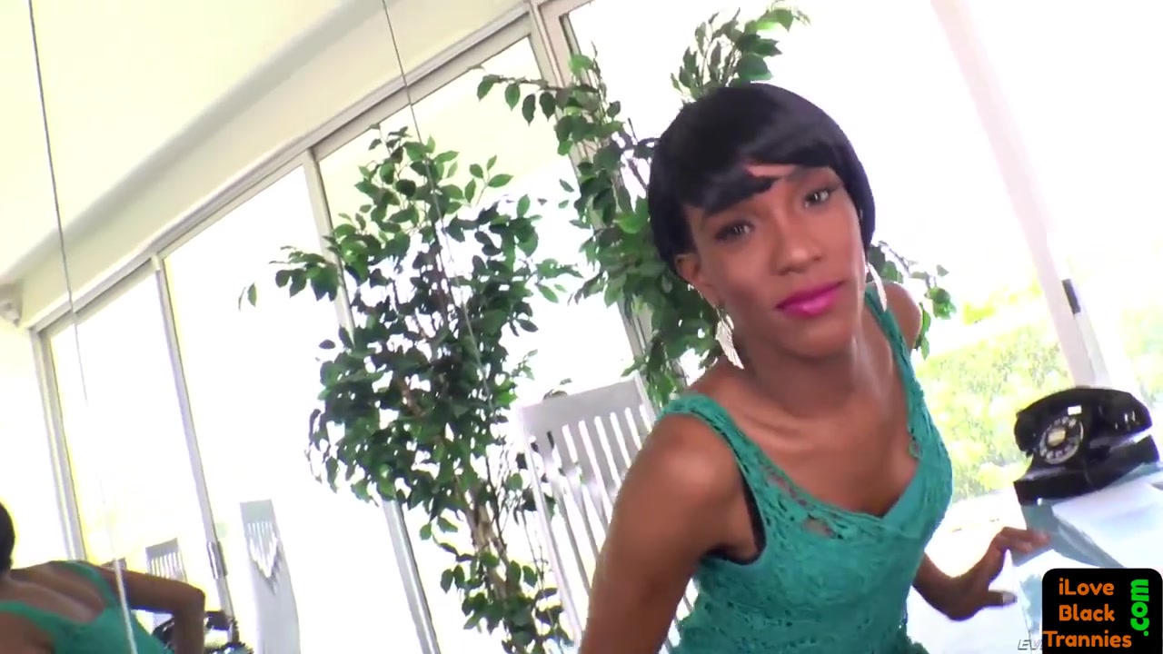 Smallish bumpers dark-hued nubile trans rock rock-hard as she gets assfucking humped