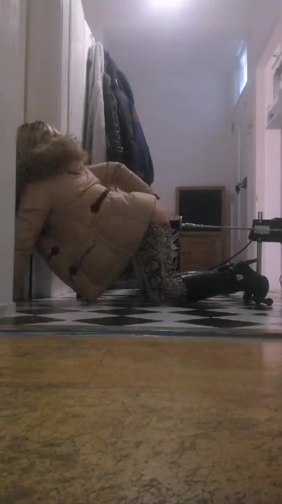 Fucking machine hard deep anal fuck fur slut fur collar fur coat highheels boots tranny