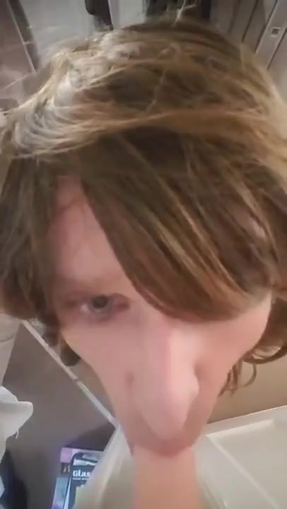 sissy deep-throating a faux-cock