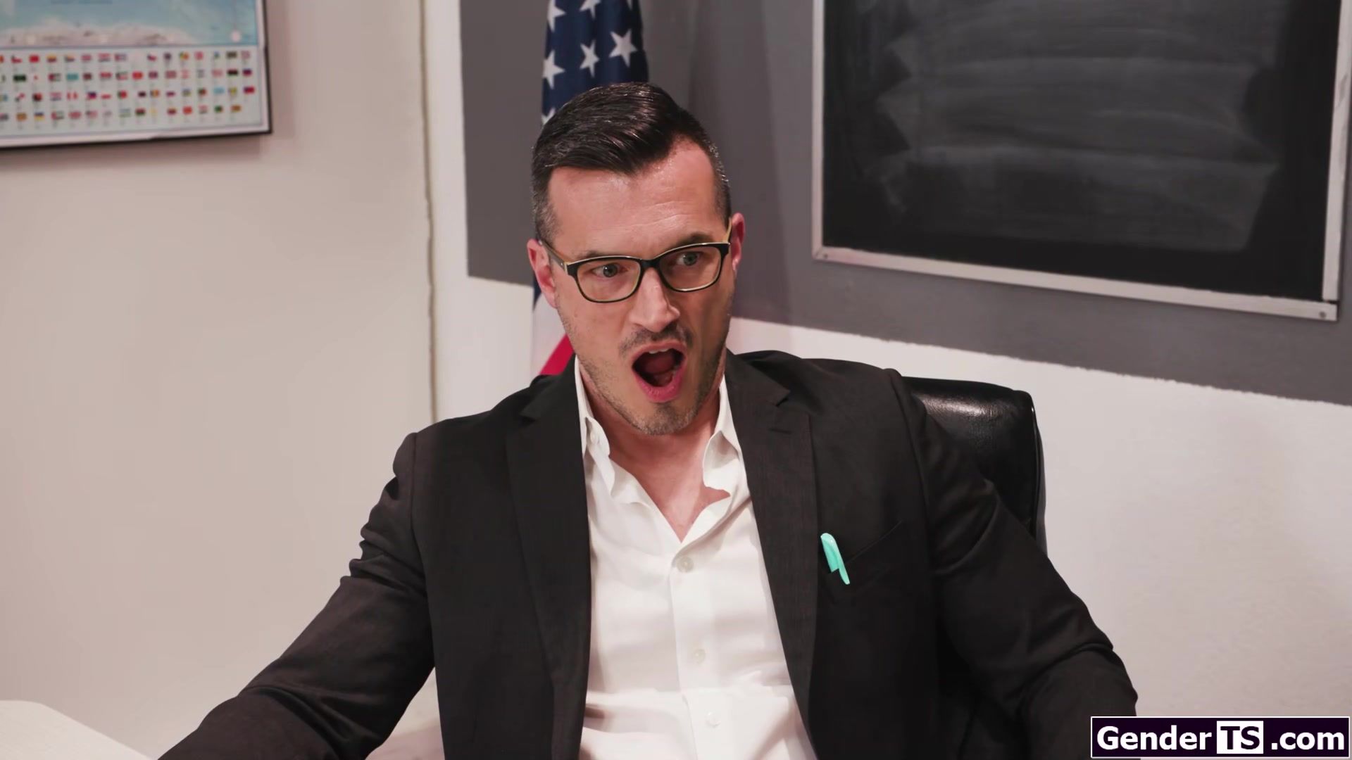 Thats alright thats ok my teachers gonna suck my cock today is what busty shemale cheerleader Avery Lust chanted during detention.The big tits tgirl gives him a blowjob and a double handjob.All horny the brunette tranny is anal barebacked on his desk