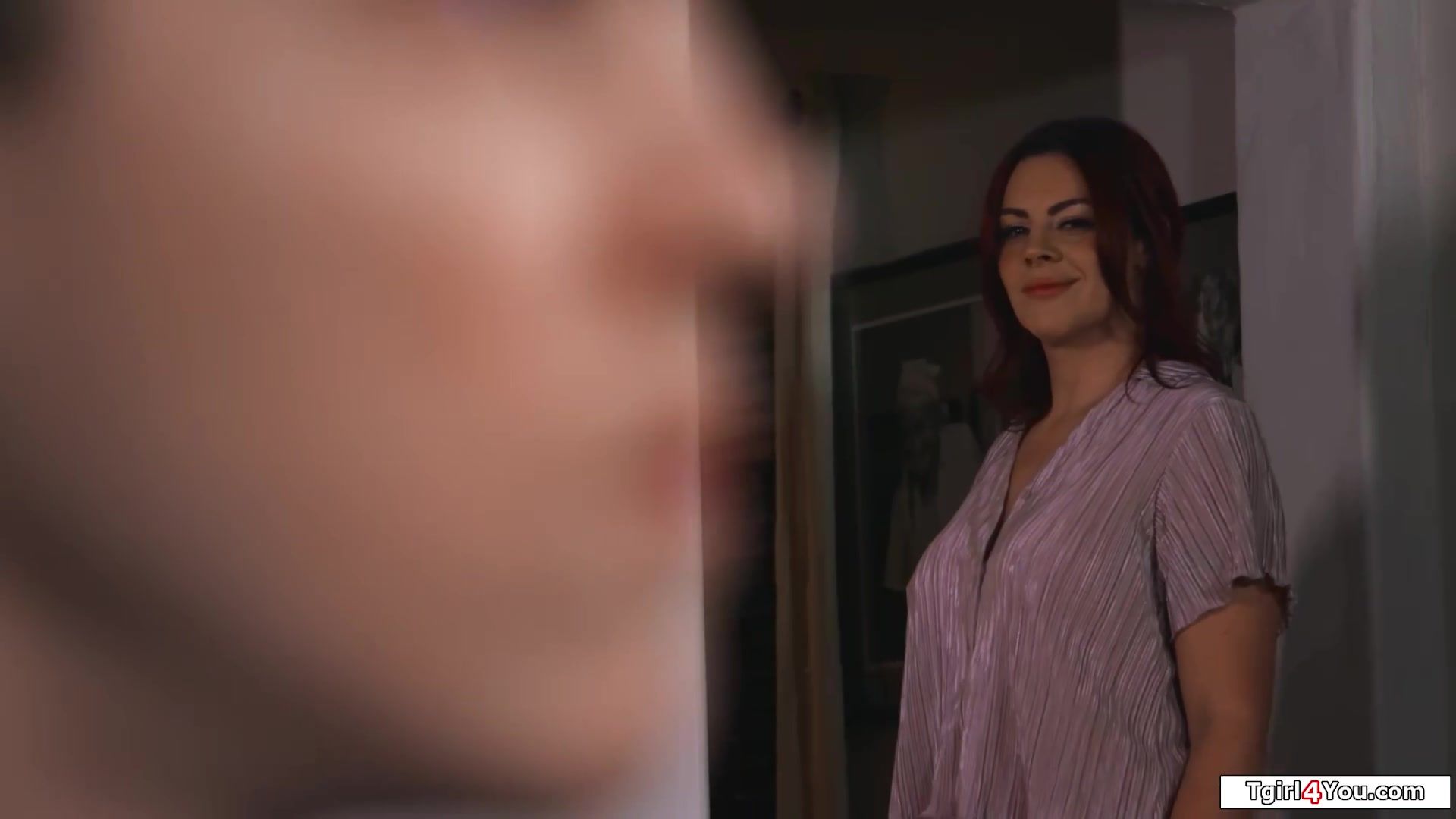 My busty trans wife Sofia Ferraris lingerie give me a boner.The big tits shemale lures him to the bedroom where she lets him deepthroat her tranny cock.The redhead tgirl gives a blowjob and gets her ass rimmed.He anal barebacks the transsexual