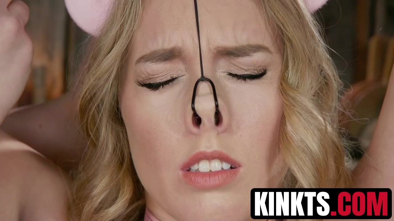 Dressed in daisy dukes, a gingham crop top, and cowboy boots, country cutie Natalie Mars works on a tractor part in her barn.