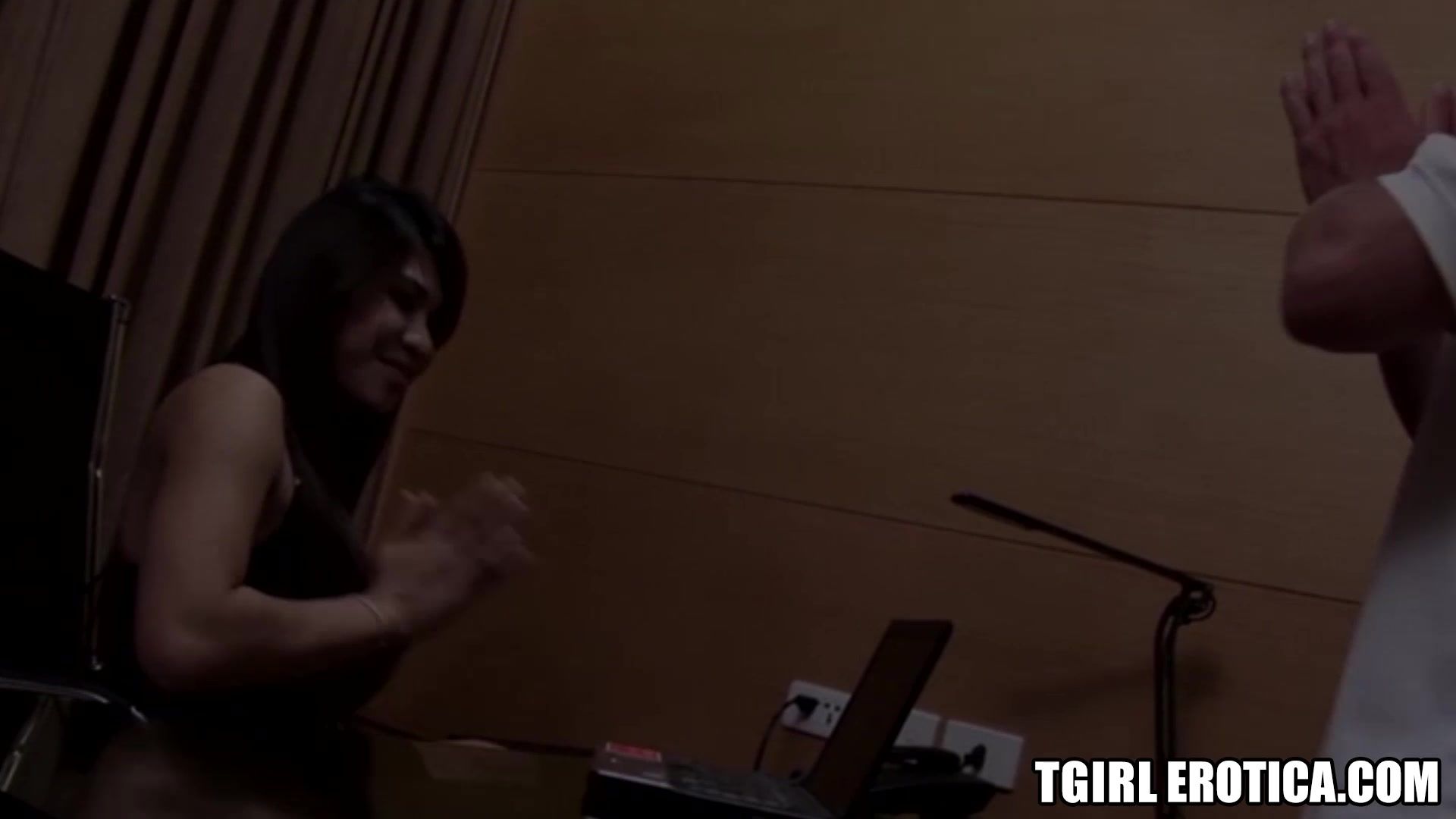 This ladyboy is so seductive that her man couldn't wait until they were finished in the shower before blowing her dick and bare banging her!