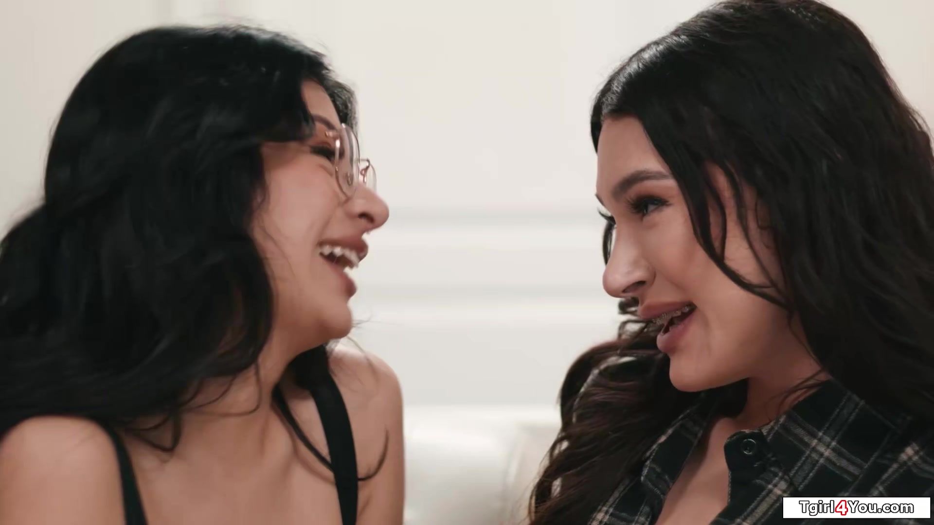Cami Strella cant take her eyes off trans contractor Andylynn Payne.The busty shemale makes her move and she licks pussy while getting her cock sucked.The big tits latina enjoys having the the brunette trans babes big tranny dick in her snatch