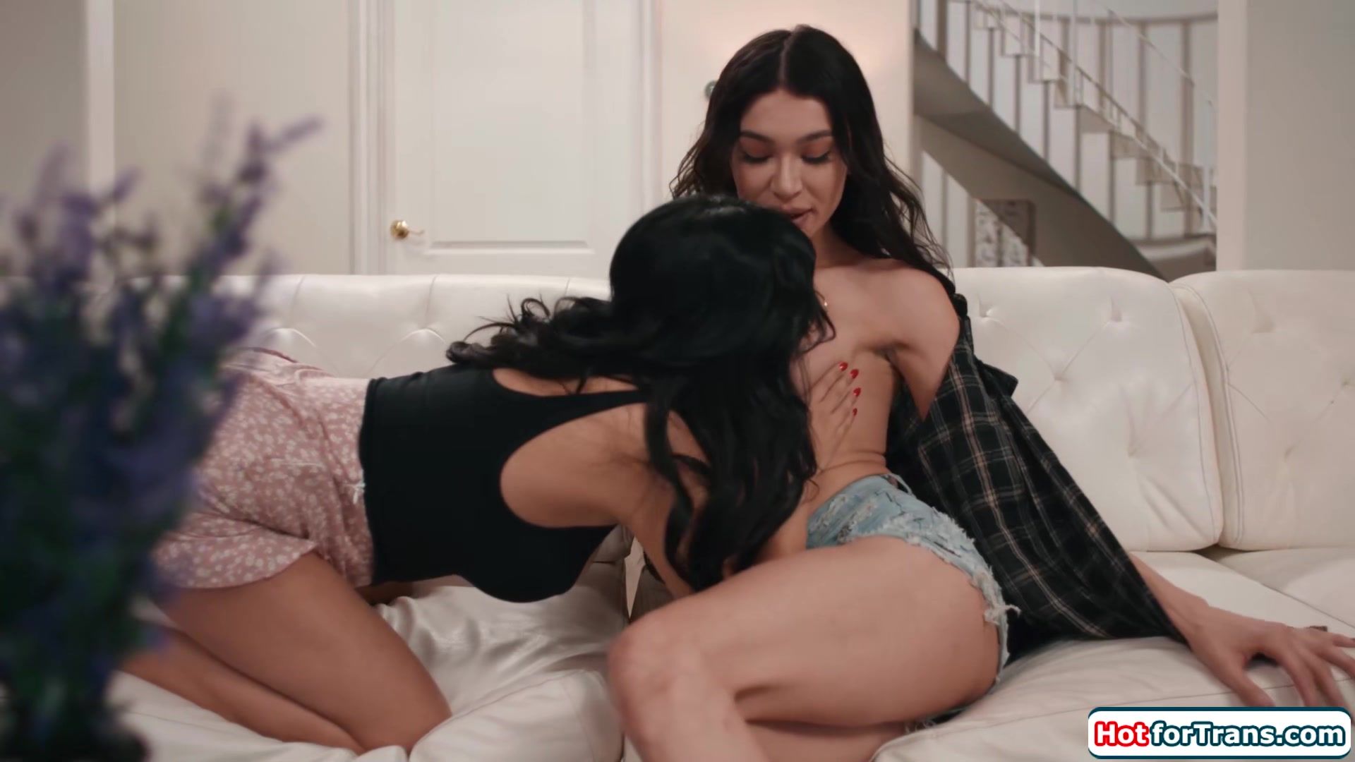 Big cock shemale contractor Andylynn Payne notices her big tits client Cami Strella been checking her out.The tgirl kisses her and they suck boobs.The busty tranny tittyfucks the latina and gets sucked off.The trans licks her pussy and bangs her