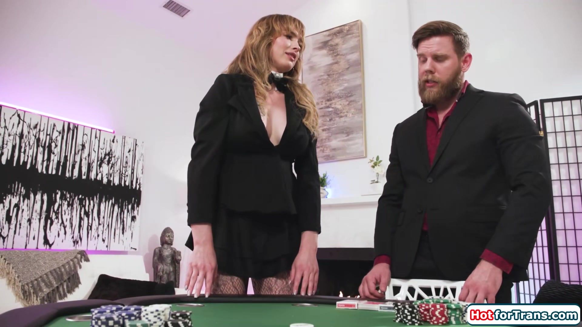 Busty shemale Blake Lovely and her friend have time to fuck before the guests arrive.The big tits tgirl gets hard when he sucks on her boobs.He deepthroats her tranny dick and she gives a handjob.The trans gives a blowjob and bareback anal rides