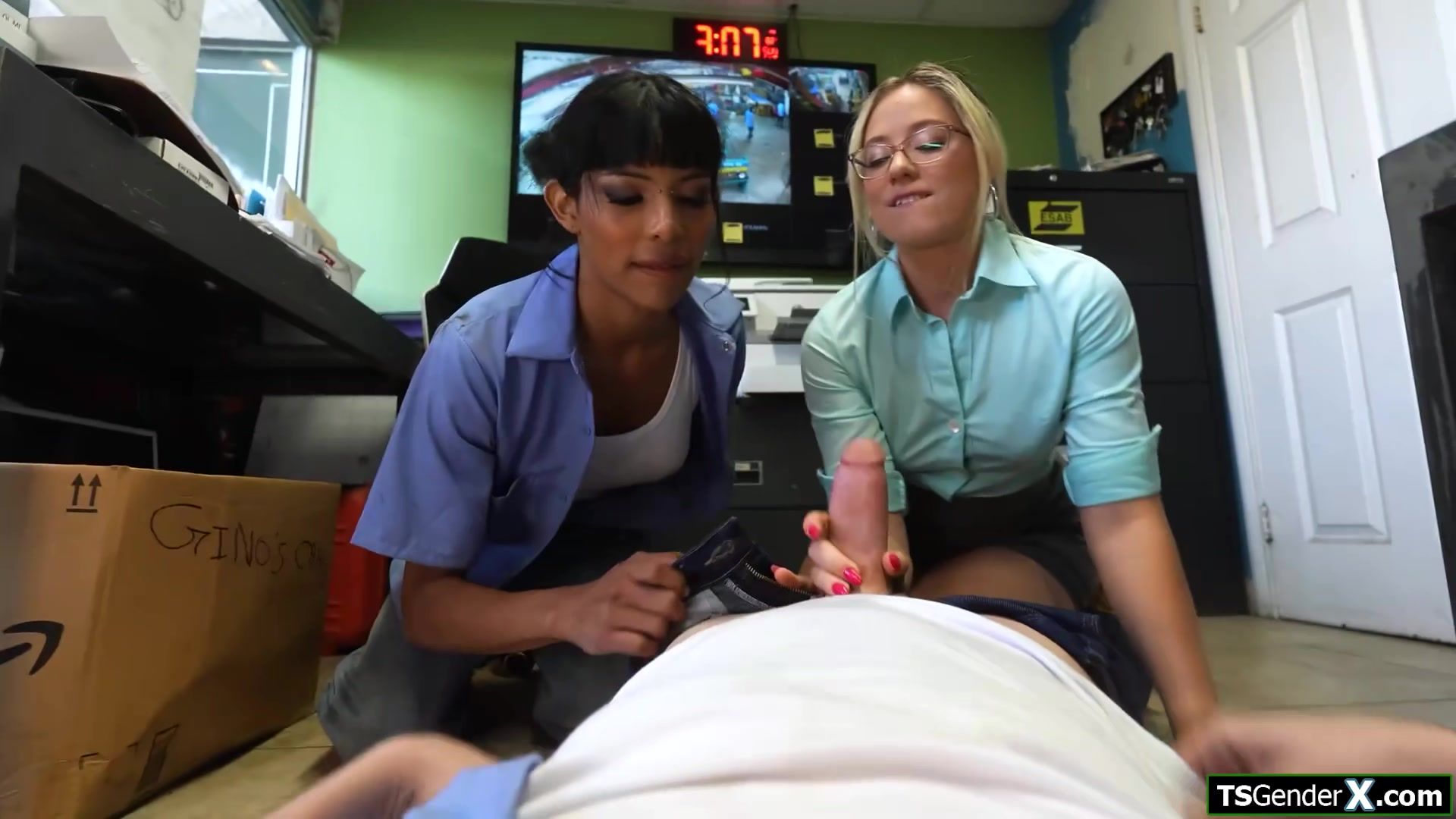 Boss River Lynn orders her trans employee Lola Morena and her colleague to get their dicks out.The small tits blonde sucks both the tgirls dick and the guys cock.The big tits latin shemale is deepthroated while she is anal barebacked by her colleague