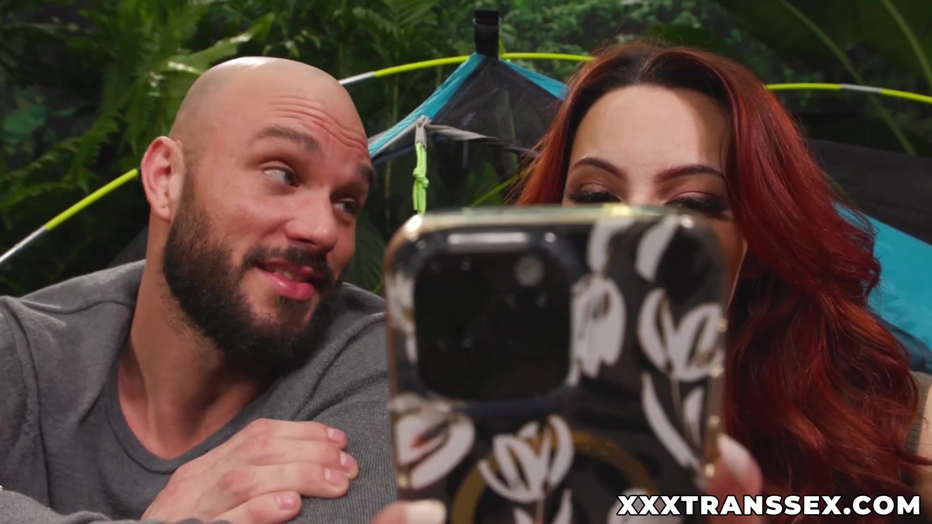 Trans camper Ariel Demure kisses Cliff Jensen before deepthroating his big cock. Cliff licks her ass and barebacks her hard inside the camping tent.