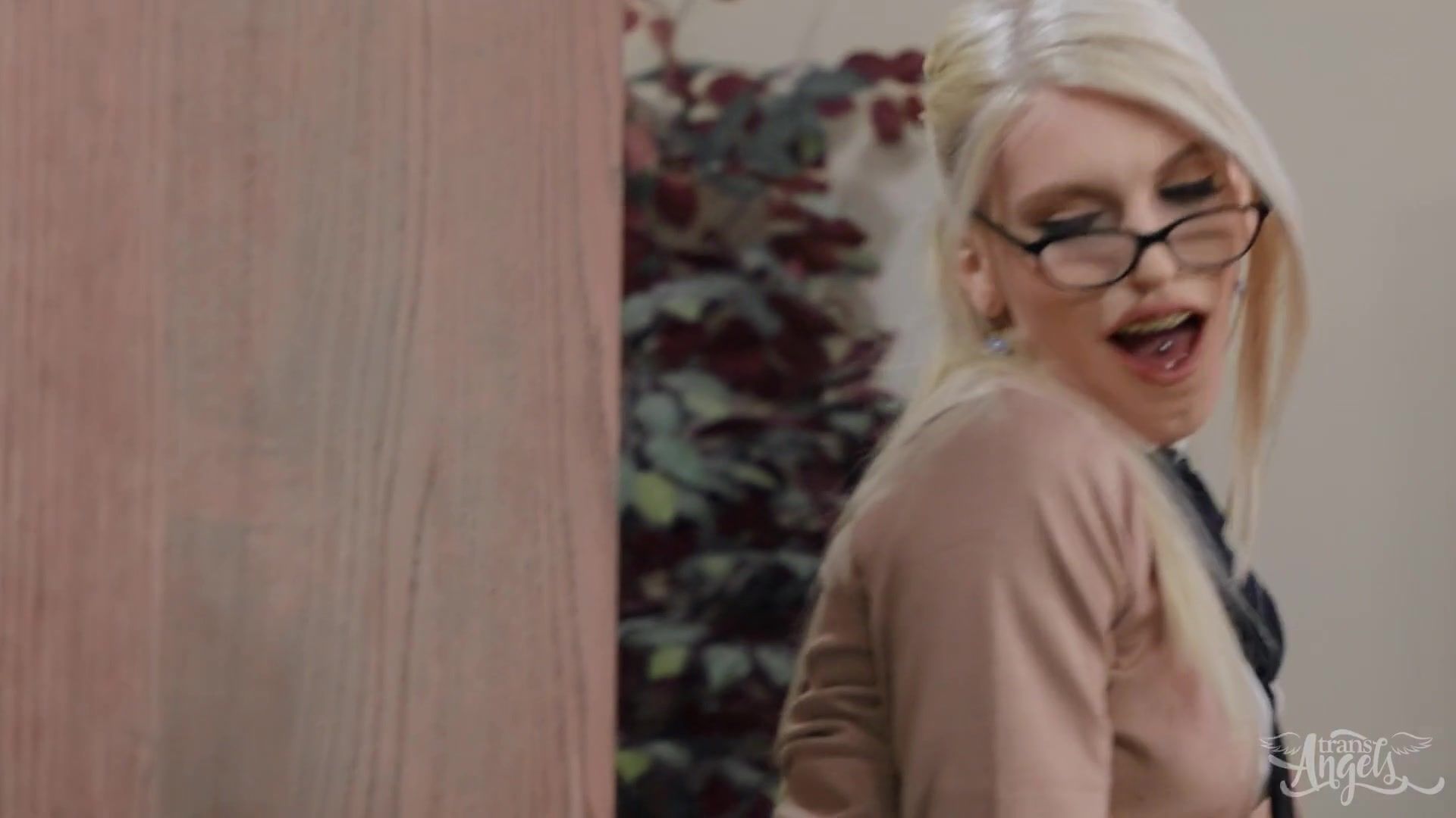 TRANSSEXUAL librarian Izzy Wilde barebacks tgirl Paradise in a three way