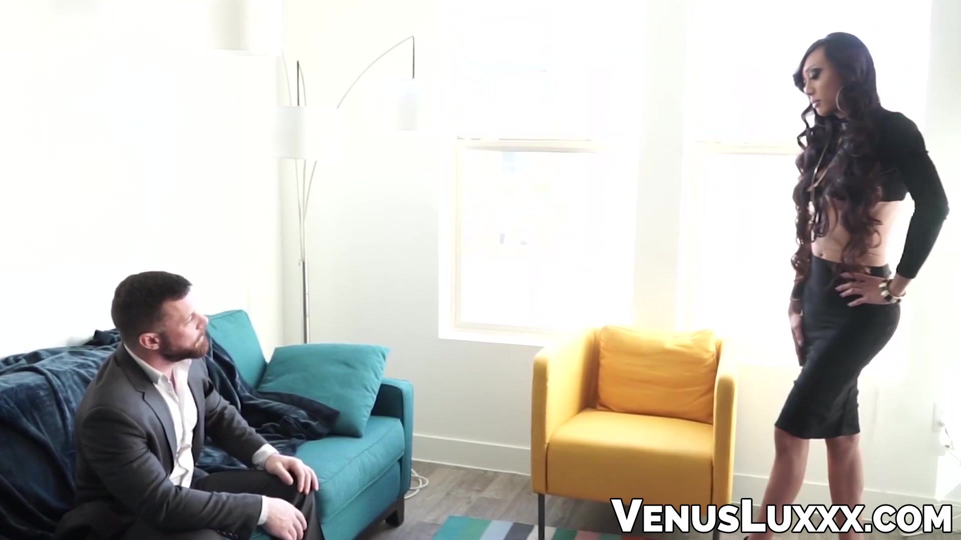 Shemale Venus Lux relieves stress bare smashing a handsome hunk