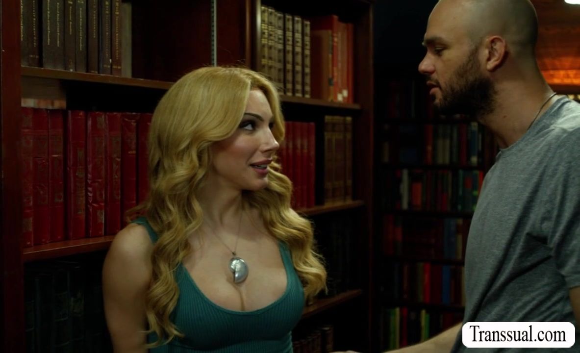Cute and beautiful Tbabe Ariel Demure is duty in library and Cliff Jensen arrives and lets her throat his angry dick.After that,he bareback fucks her tight butthole and go to Transsual.com for more like this to watch and more discount.