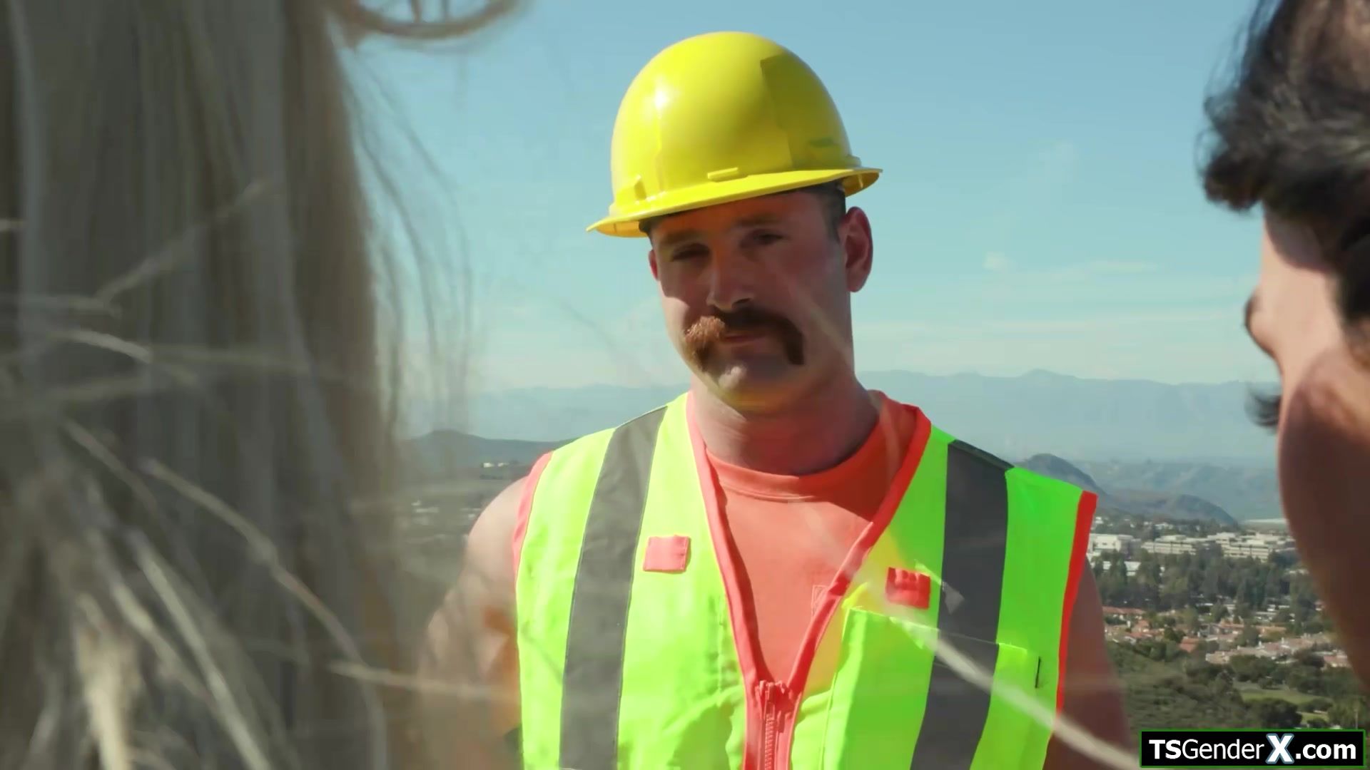Busty shemale Aubrey Kate and latin trans Avery Lust has set their eyes on a worker.The tgirls suck his cock and reveil their hard tranny dicks.He deepthroats them both.The brunette ts is bareback anal fucked while giving a bj to her transsexual gf