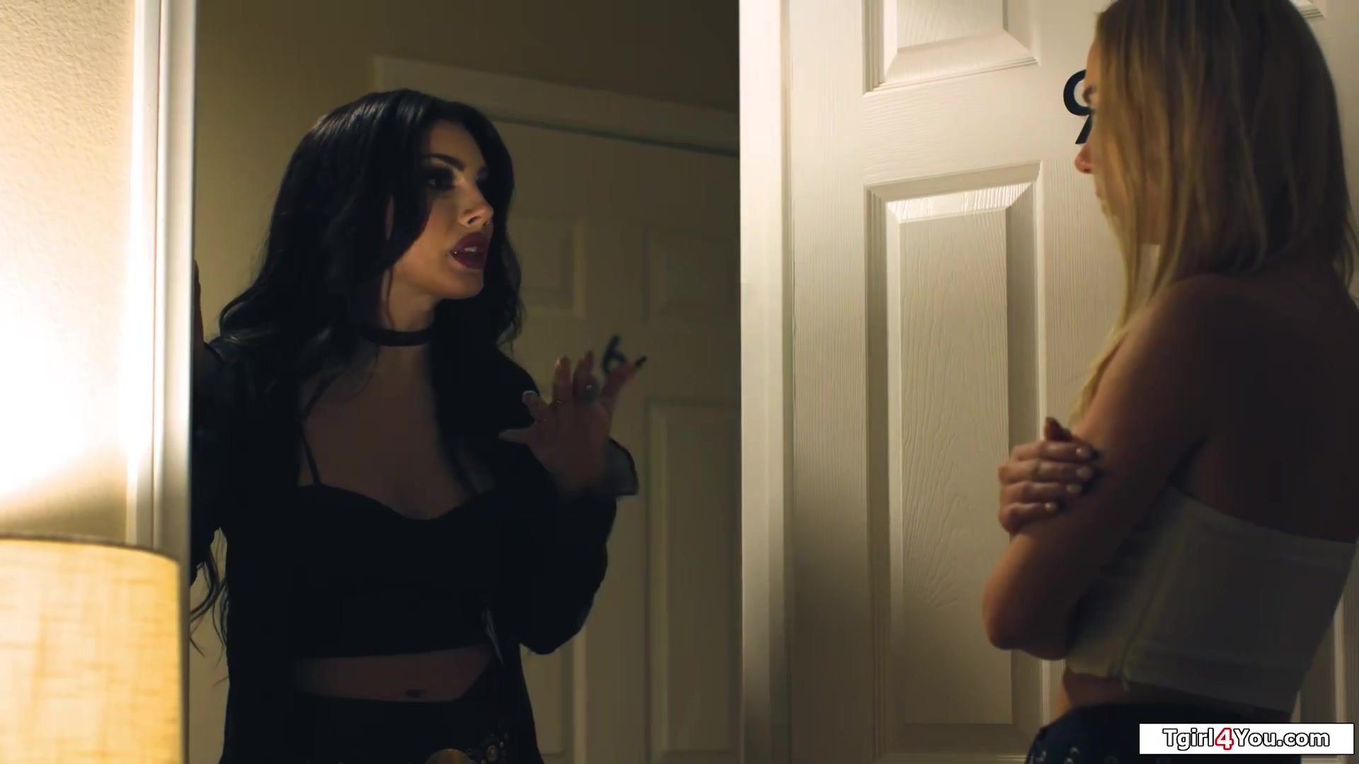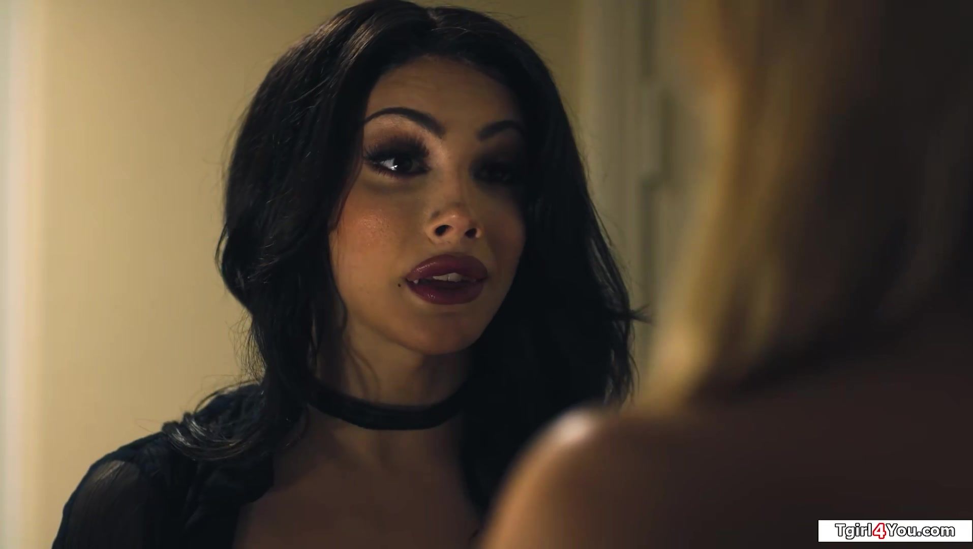 Braylin Baileys busty shemale friend Ariel Demure has been turned into a vampire.The big tits latin tgirl will turn her as well so they can be together.The latina trans gets her big tranny dick sucked and licks her gfs pussy before she fucks her