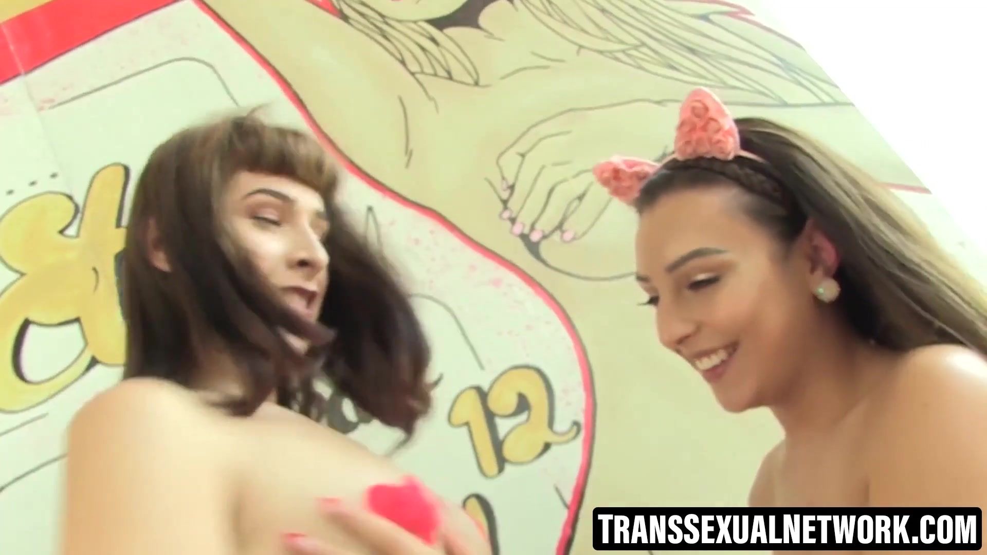 TranssexualNetwork.com - Alexa Scout's cute shemale jerk off and cum after blowjob
