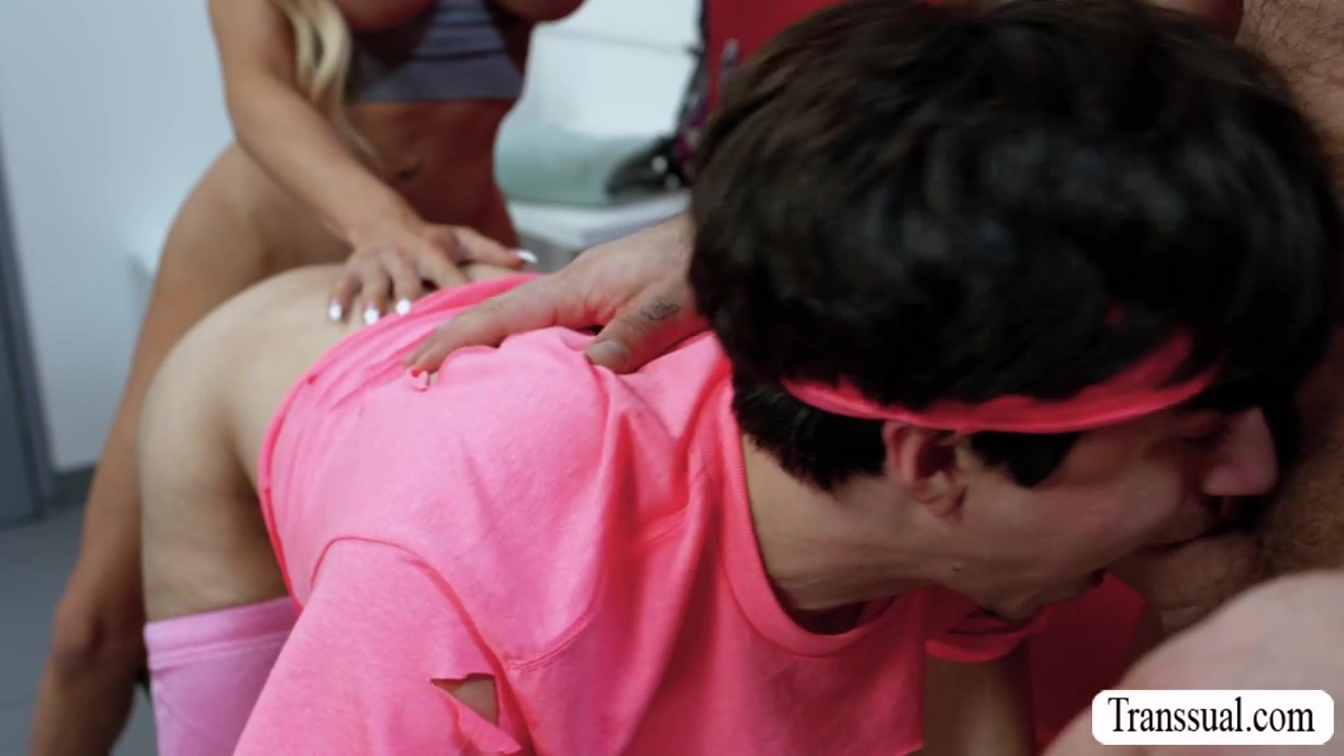 Sweaty hot hardcore fucking is about to be nasty ! Multiple positions and climaxes you cannot miss.Watch this Twink get ass fucked by curvy big ass shemale and sweaty fat dude in the locker room.Go to Transsual.com for more like this to watch.
