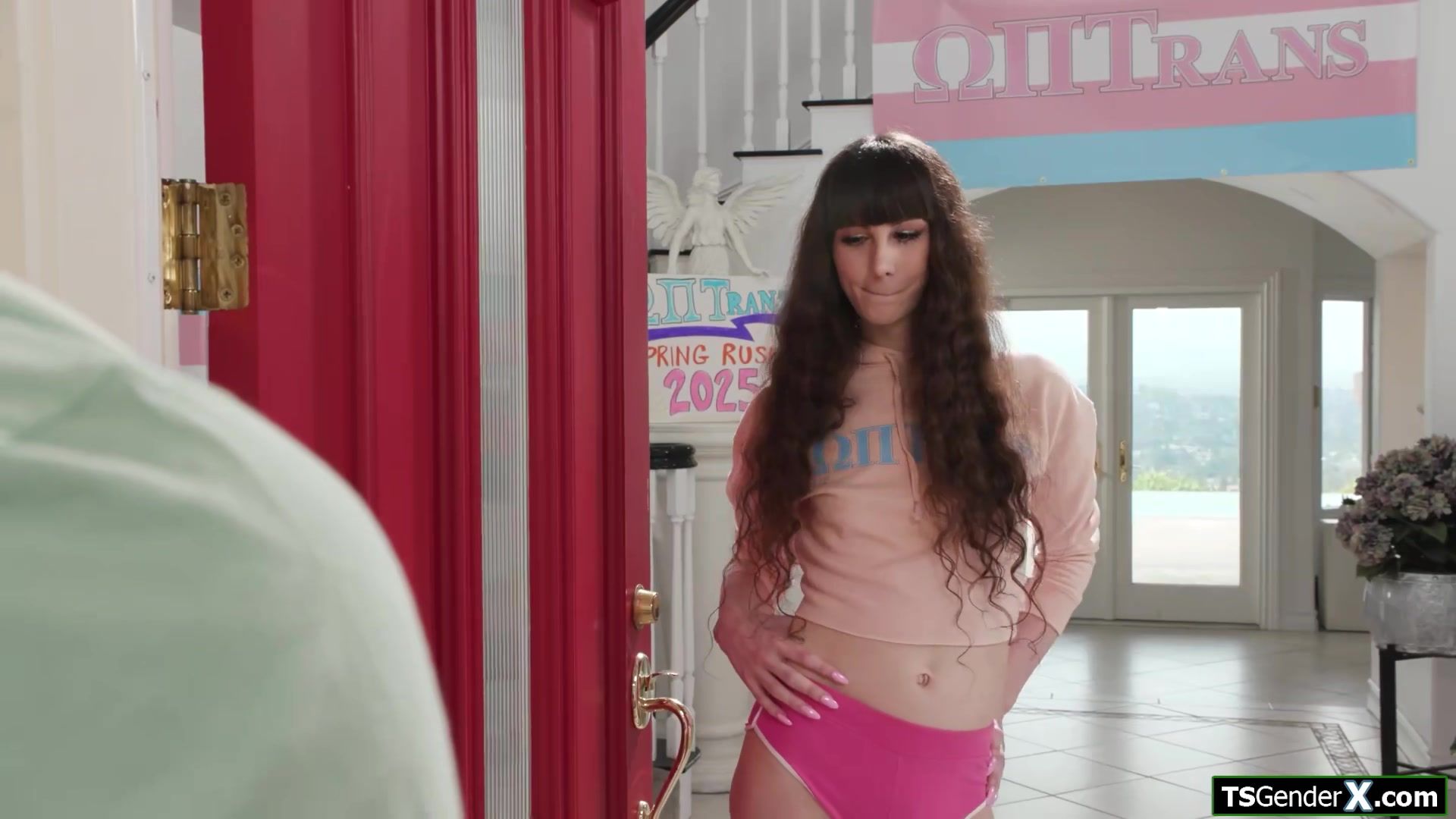 Trans sorority girl Livi Doll takes her tranny dick out for a guy to suck.The small tits tgirl gives a double handjob before she deepthroats his big cock.The small boobs brunette shemale gets her ass rimmed and enjoys being anal barebacked