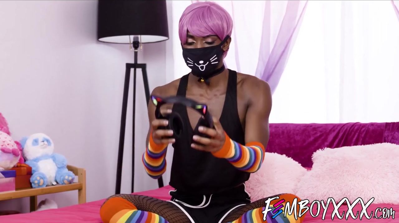 Kai is dressed in nice and jaw-dropping rainbow forearm warmers socks and dark fishnets. She dances passionately to music creating an inviting look for Rick.