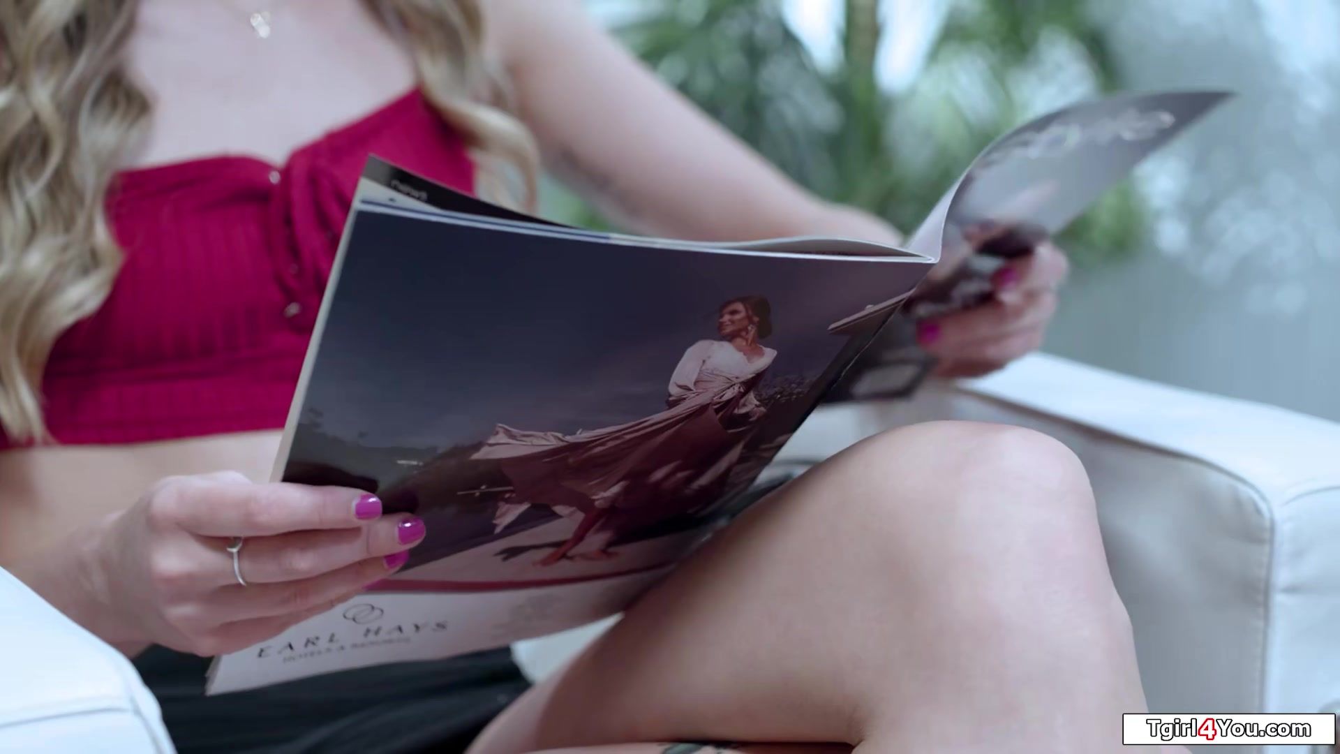 Big boobs tattooed shemale Gracie Jane and Haley Reed find a way to pass their time waiting.The busty tgirl is facesitted to lick the blonde pussy while she gets her tranny dick sucked in a 69er.The trans bangs the small tits babes shaved snatch