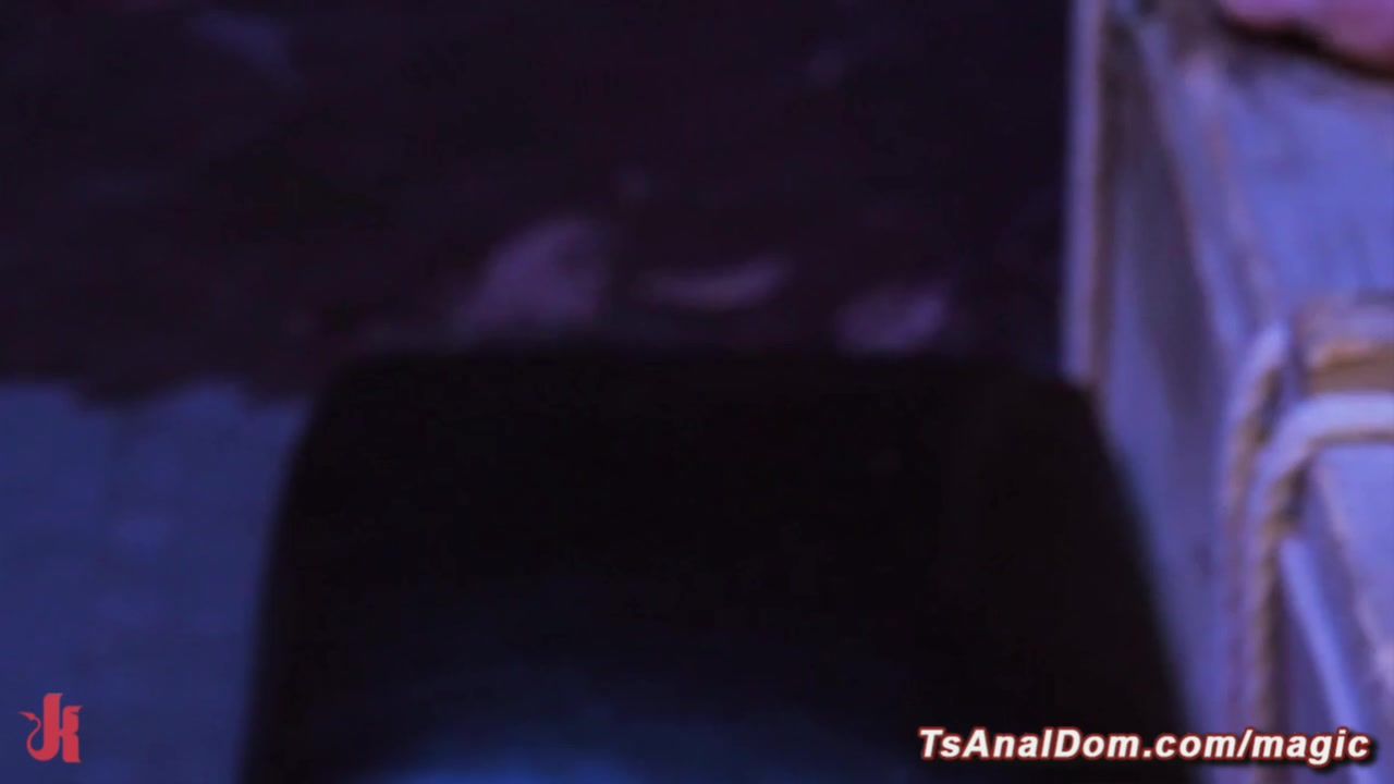 TS Jade Venus torments butt plugged muscle slave Draven Navarro