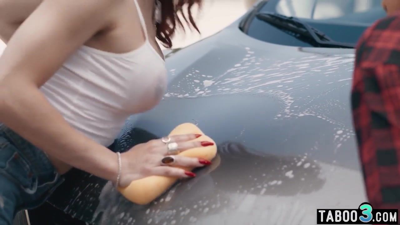 Marvelous COUGAR Romi Rain with yam-sized knockers helps her ts GIRLFRIEND Ariel Demure to wash her truck then the insatiable milf offers to paraffin wax her ample beefstick too