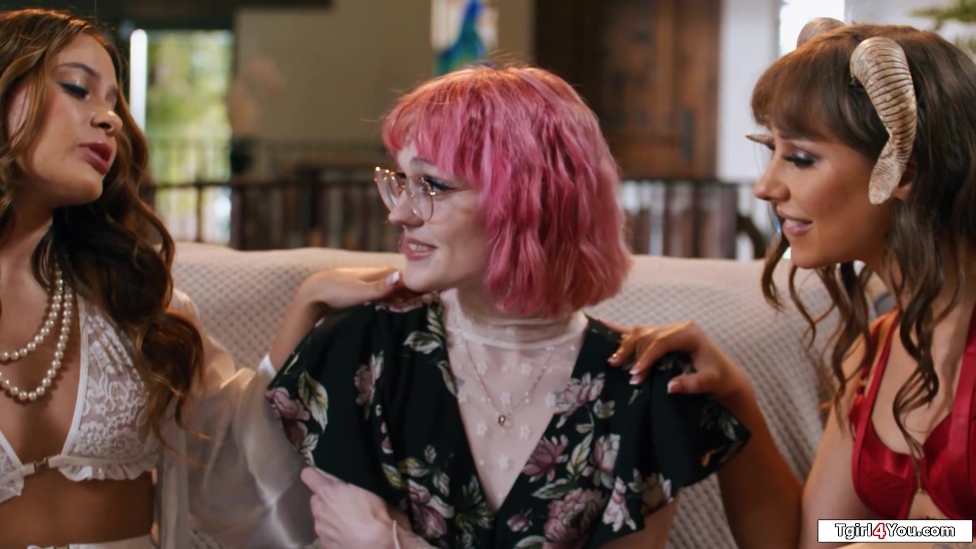 Trans Clair Tenebrarum has a sex duel with big tits angel Nicole Aria and devil Tommy King.Both ladies suck the shemale to get the upper hand.The tgirl is in the middle of the ass licking line up and bangs the busty babes shaved pussy while kissed