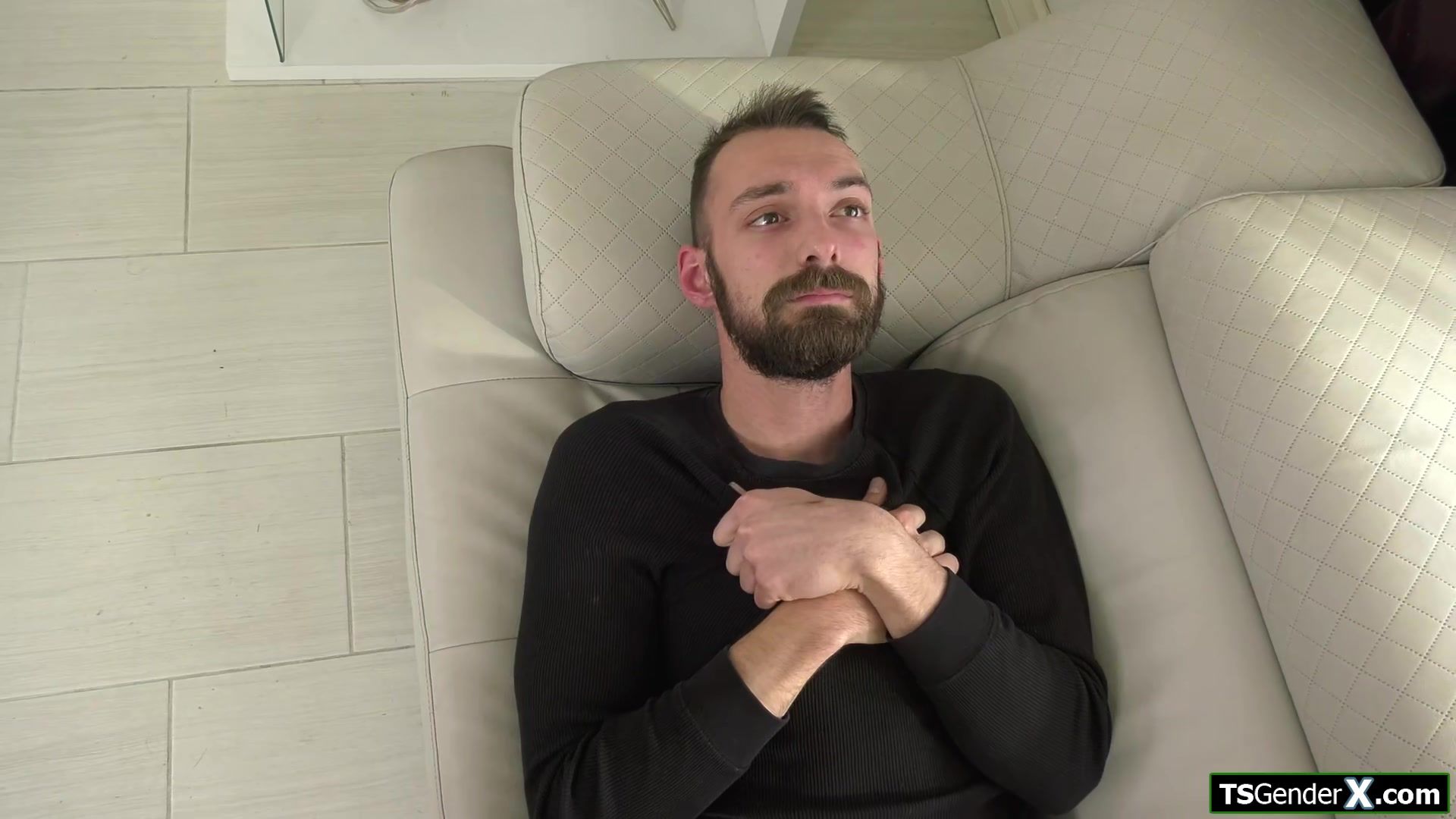 Busty trans shrink Cherry Mavrik reveals her big cock and facefucks her male client.The big tits blonde shemale handjobs both boners before she anal rides his dick with her tranny hardon.The horny tgirl bends him over and barebacks his tight ass