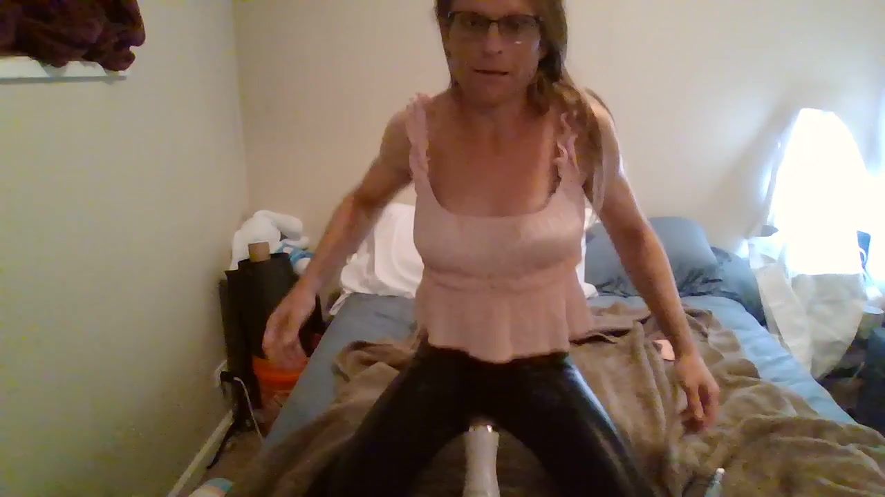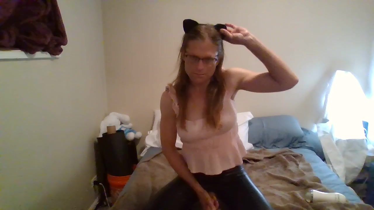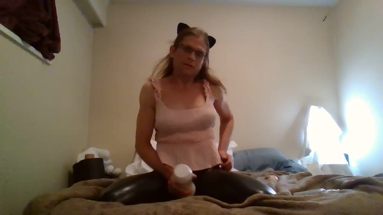 Kitty Kat Trans Nymph in Fake leather stretch pants nails her lovemaking plaything